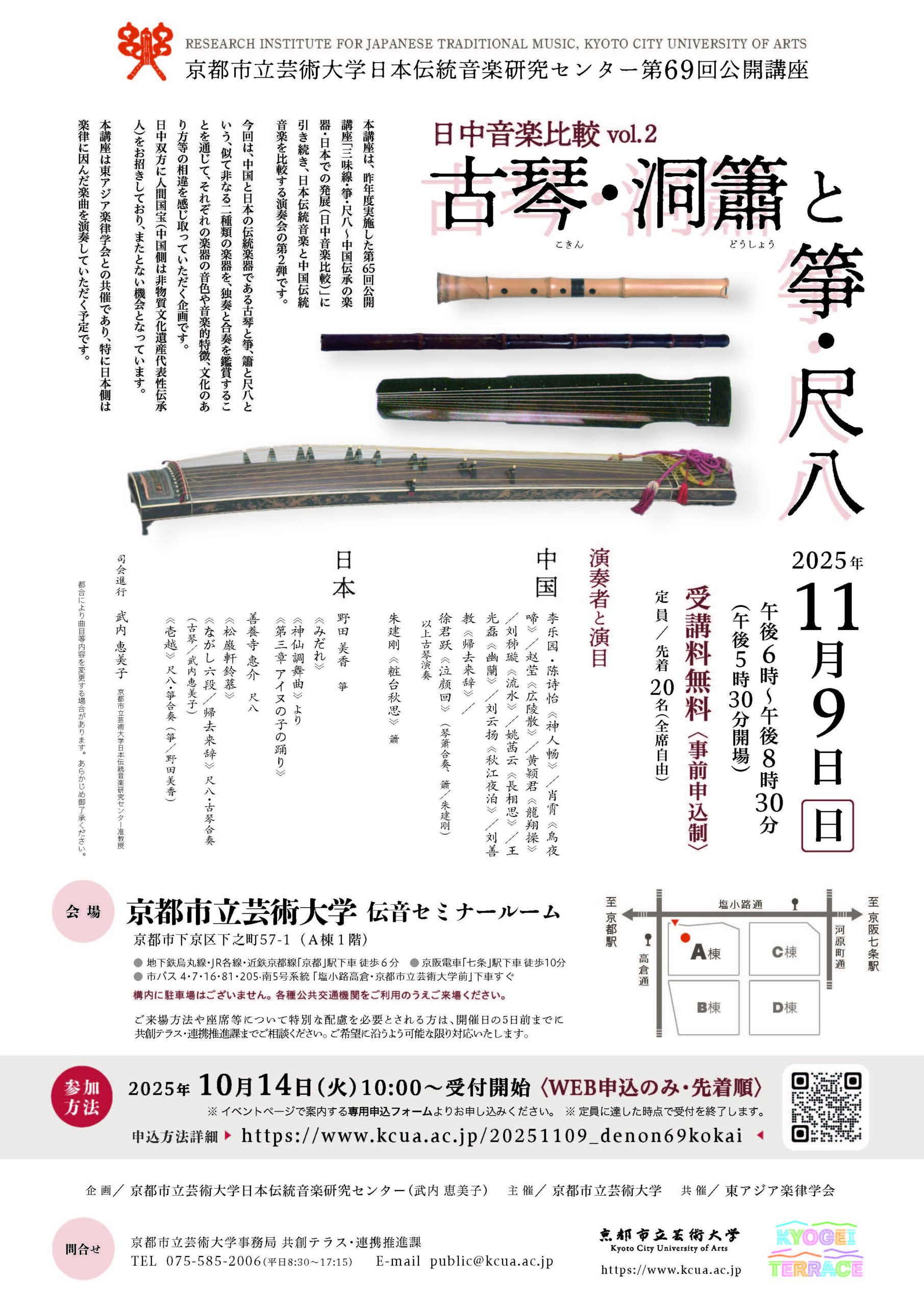 ⽇中⾳楽⽐較Vol.2「古琴・洞簫と箏・尺⼋」を開催します。