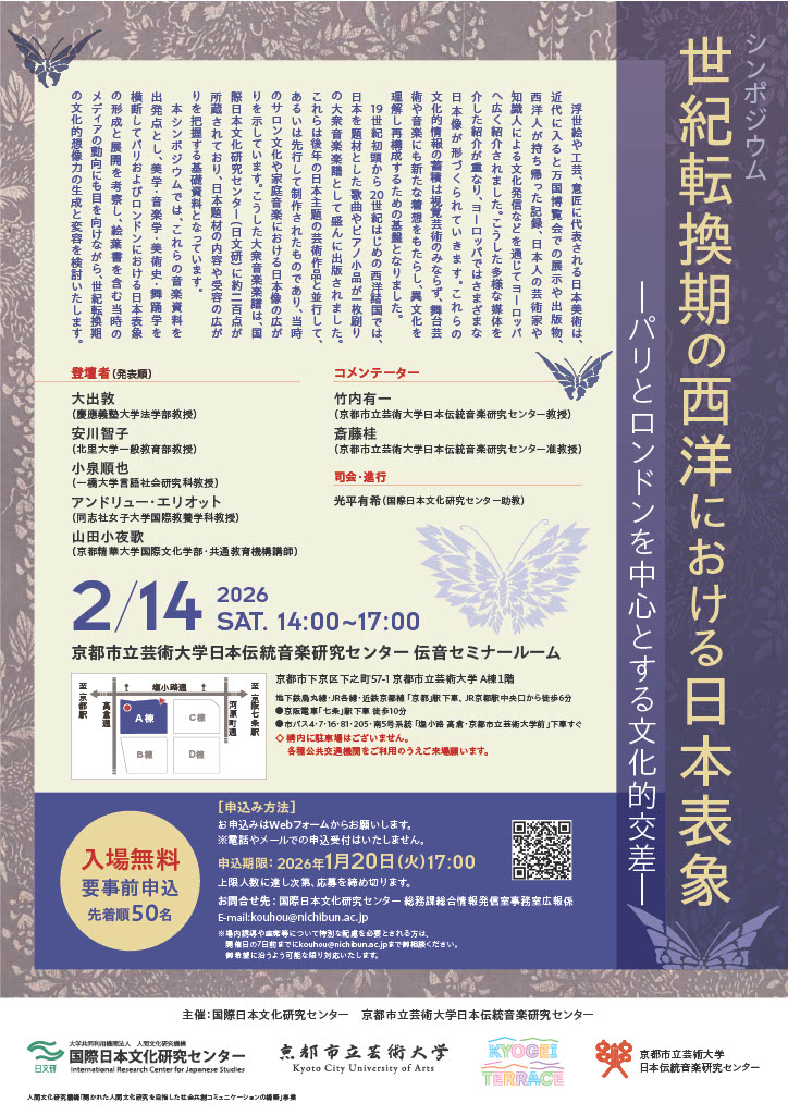 令和8年2月14日 土曜日、日本伝統音楽研究センターでは、国際⽇本⽂化研究センターとの共催による シンポジウム